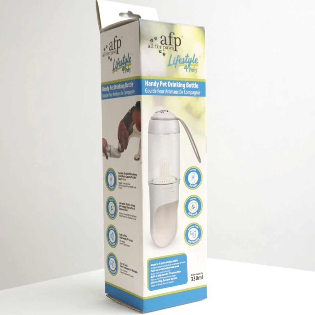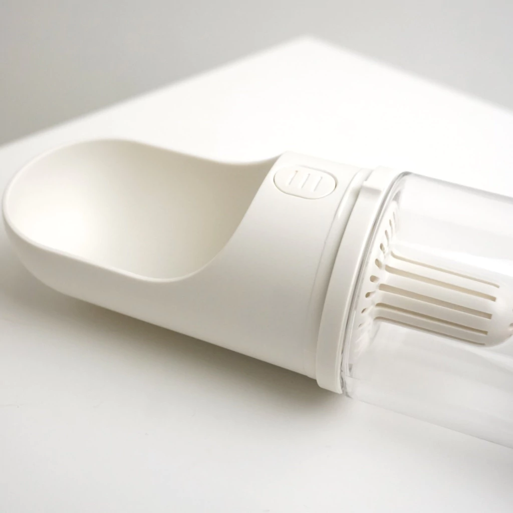 Botella portátil para mascotas. Diseño de plástico con 330ml de capacidad, perfecto para caminatas para mantener a tu mascota siempre hidratada. Es muy fácil de usar, solo hay que presionar el botón para que el agua comience a salir, se necesita solo una mano. Está sellada con anillos de silicona para no tener pérdidas y trae un filtro de agua de alta densidad para absorber impurezas.