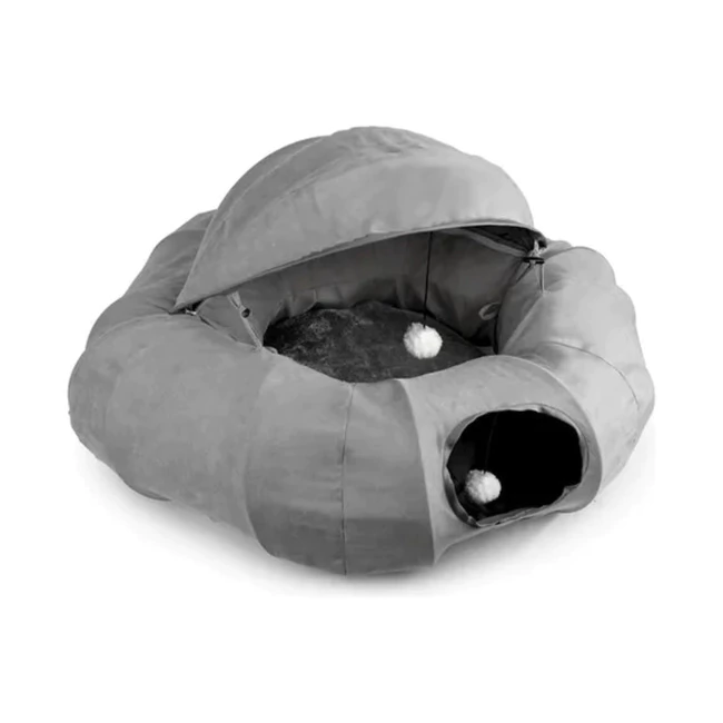 Convierte el descanso y la diversión de tu gato en una experiencia única con este tunel diseñado para jugar, esconderse y dormir cómodamente. Su estructura circular crea un espacio acogedor y seguro, ideal para gatos curiosos y amantes de los escondites.