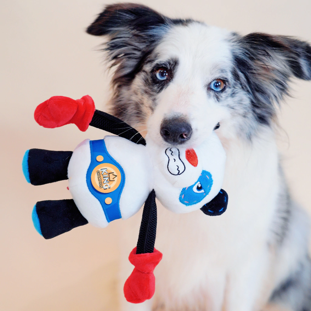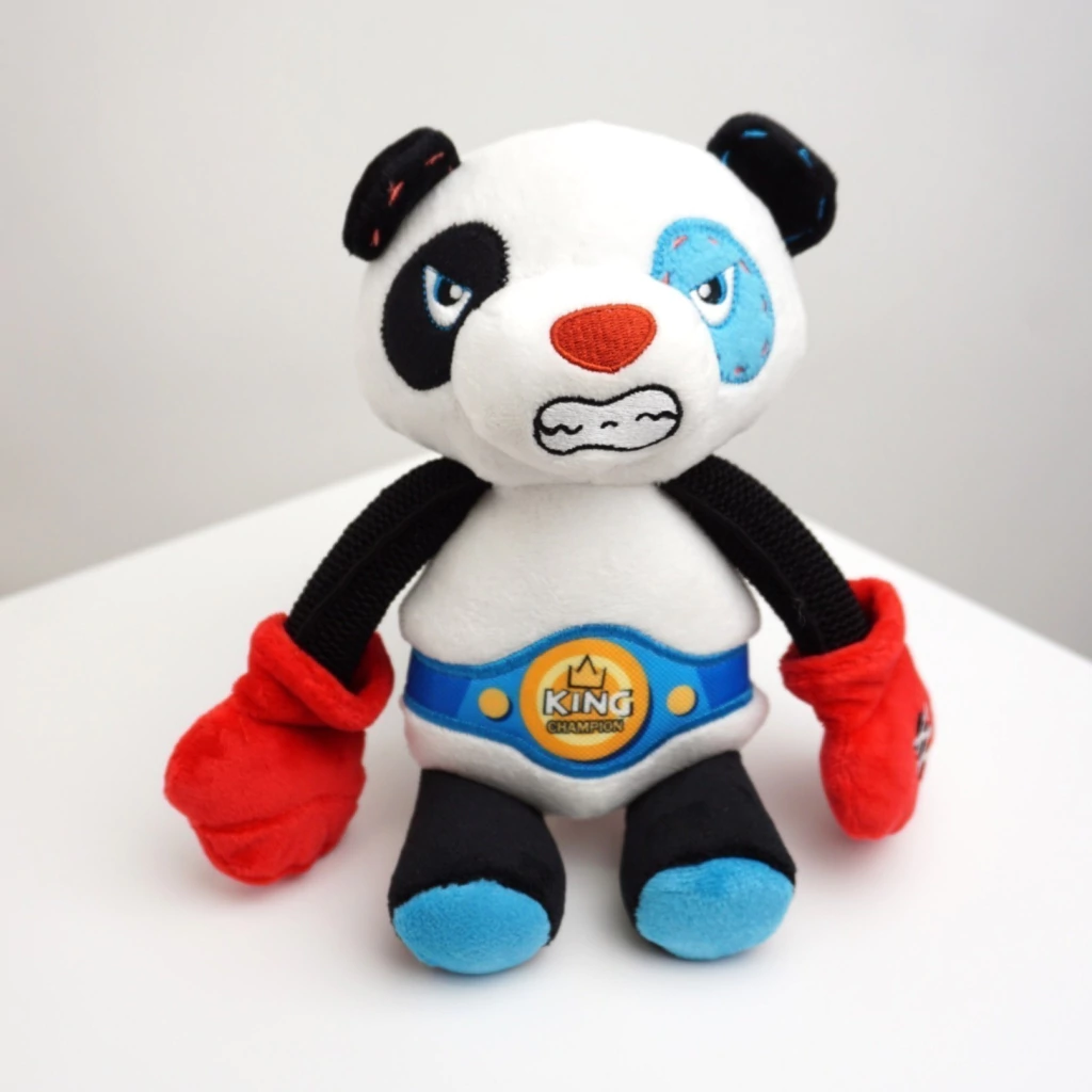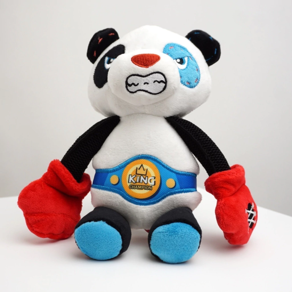 Ademas de su felpa de doble capa y sus costuras reforzadas, sus bracitos son elastizados para que dure mucho más! Y como todo buen boxeador, sus guantecitos con un silbato dentro cada uno, están listos para dar pelea.